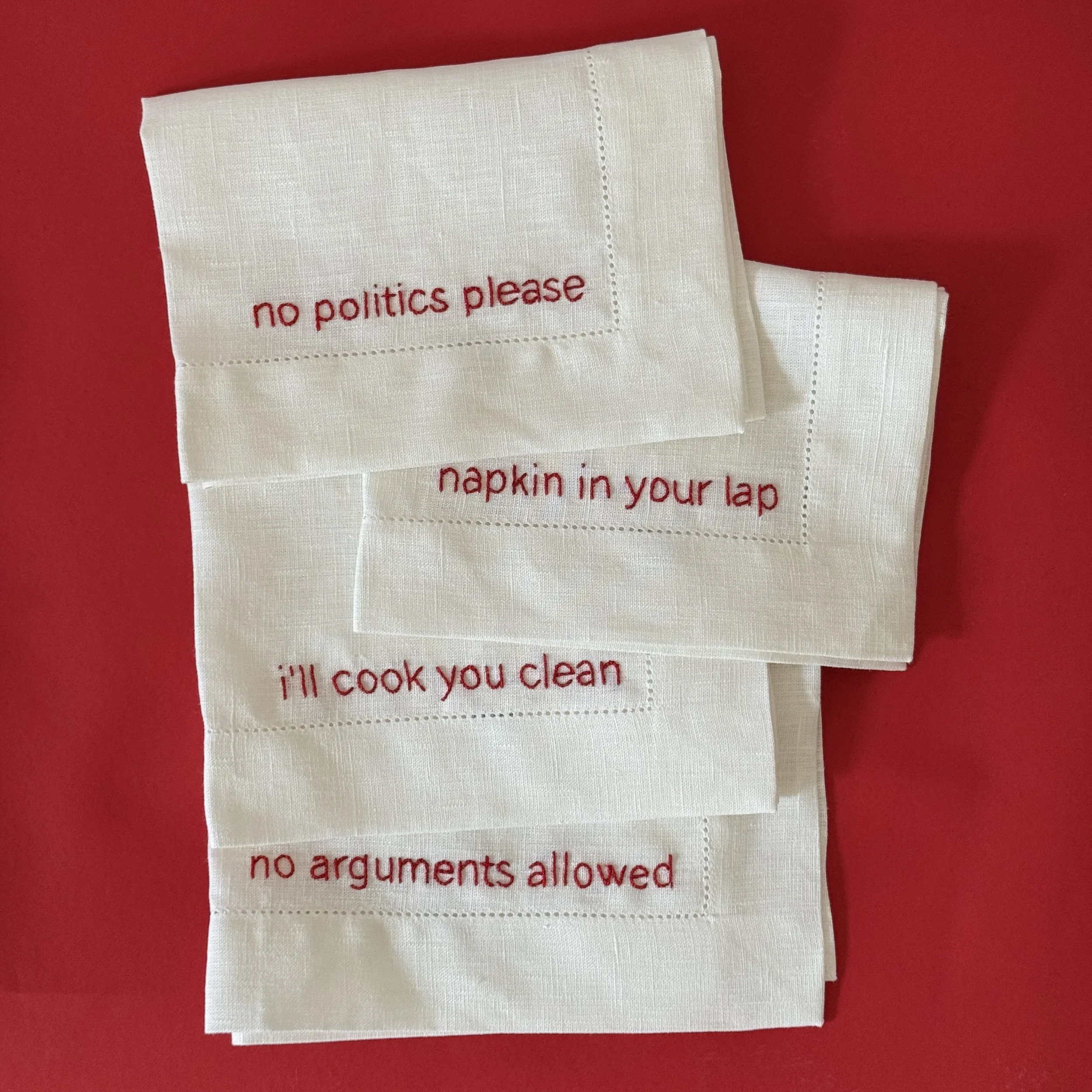 Categories: All Gift Card Table Accessories Textile Art Table Cloth Table Napkins Table Placemats Festivus Collection All New Sale All / ‘Bonton’ vol.2 Table Placemats €85.00 Nit Gift Card from €75.00 Napkin Rings with Pearls €29.00 Between the Seen and Unseen €1,440.00 Oyster Table Placemats – Set of Two €70.00 ‘Bonton’ Table Placemats €85.00 Unspoken Lines 004 €410.00 Sold Out Personalized Linen Placemats €42.00 Sold Out Unspoken Lines 003 €410.00 Sold Out Oyster Tablecloth €366.00 Witty Linen Placemat – “please leave by 9” €85.00 Sold Out Oyster Table Npkins €72.00 Air No. 001 (Set of 2) €380.00 Sold Out Unspoken Lines 001 €410.00 Sold Out